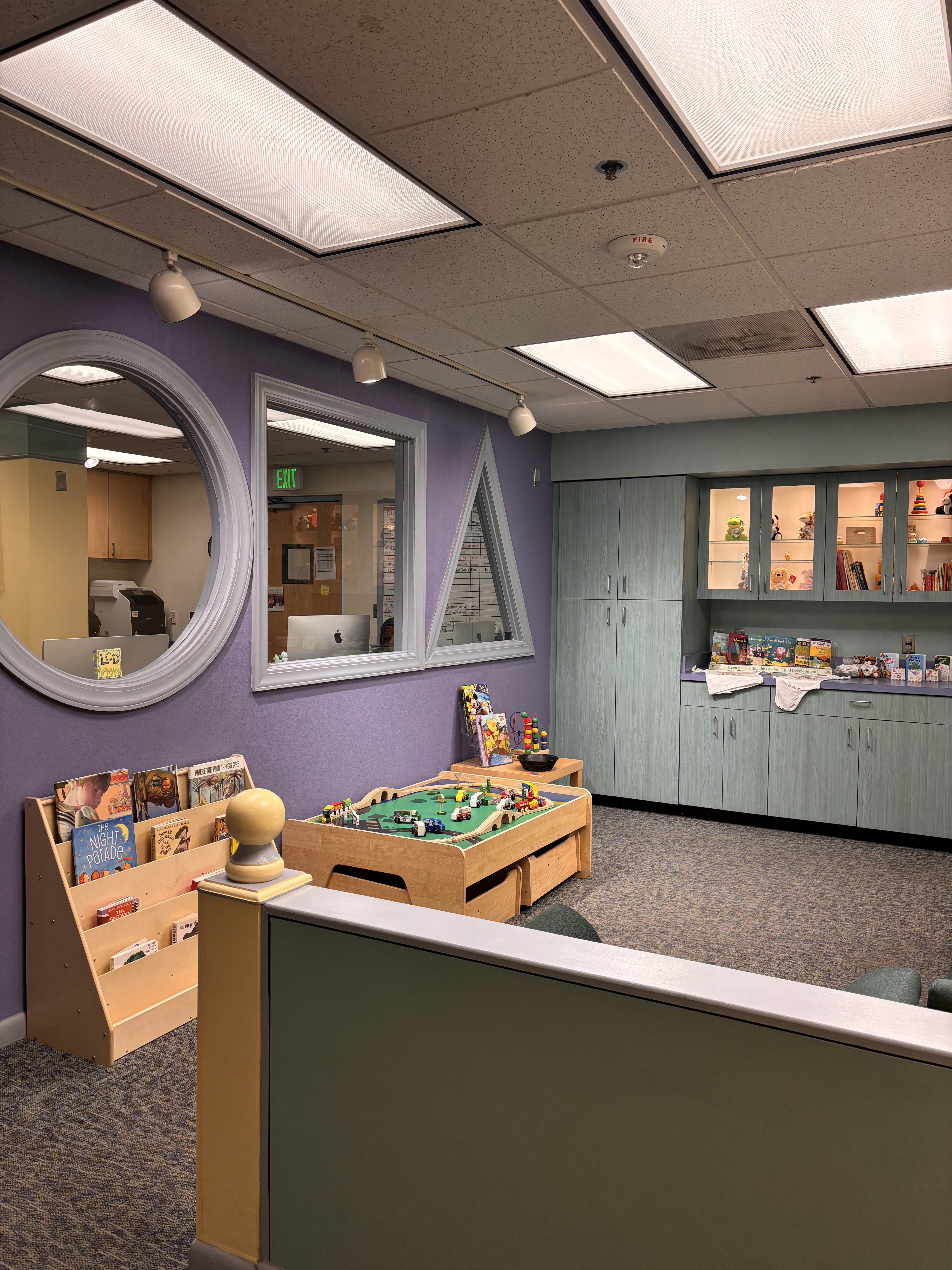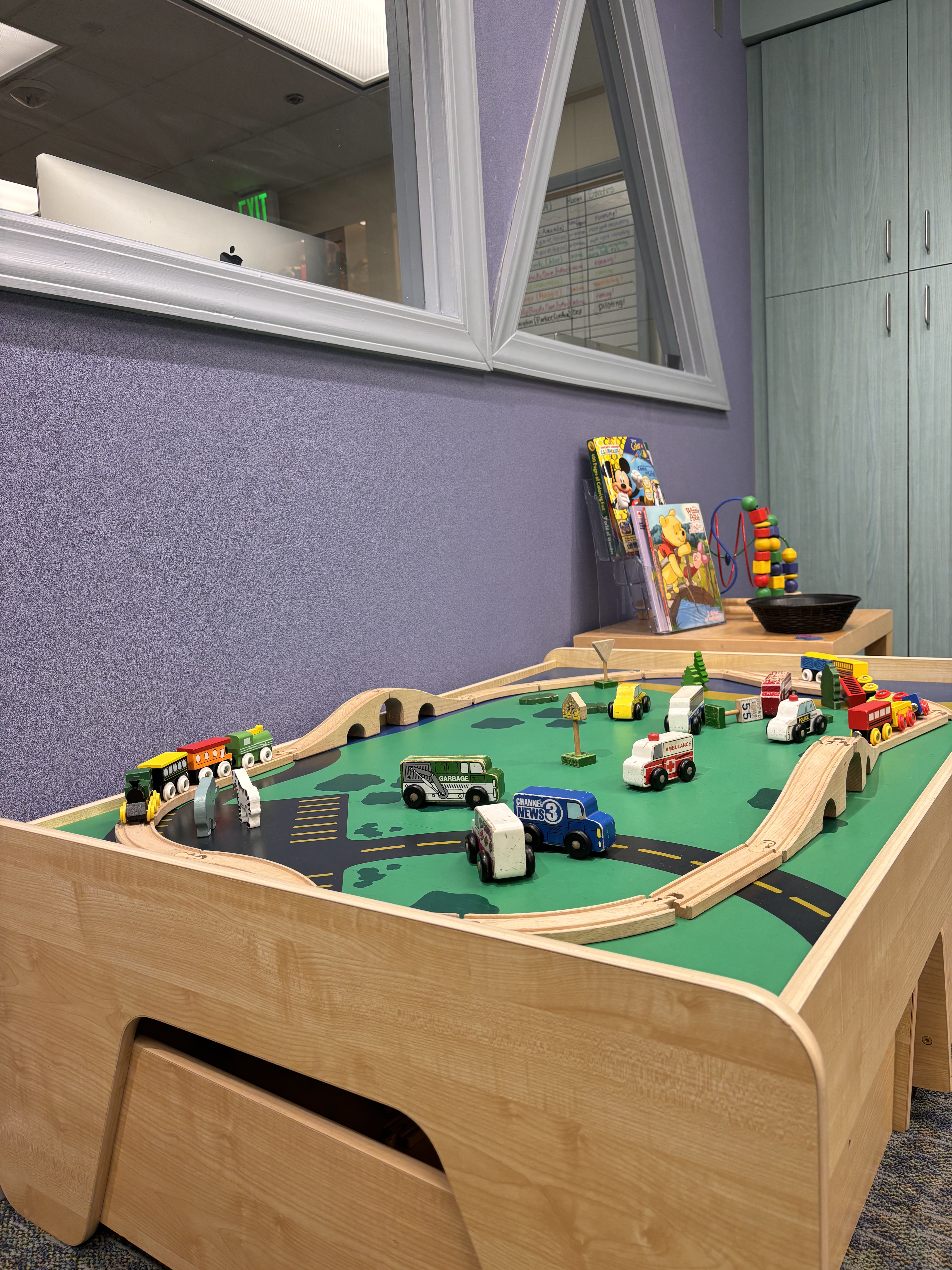 Our colorful Waiting Area gives parents and children time to relax and play before and after studies are conducted. While our staff explain our research to parents, kids can play with our train set, dive into our toy collection, or enjoy our library of children’s books.
